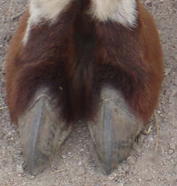 | Lama und Alpaka zählen zu der Unterordnung Schwielensohler (Tylopoda). Die Sohlenflächen der beiden Zehen sind mit dicken, federnden Schwielen gepolstert. Die Nägel müssen bei Bedarf geschnitten werden. Neuweltkameliden sind reinliche Tiere. | ![]() |
